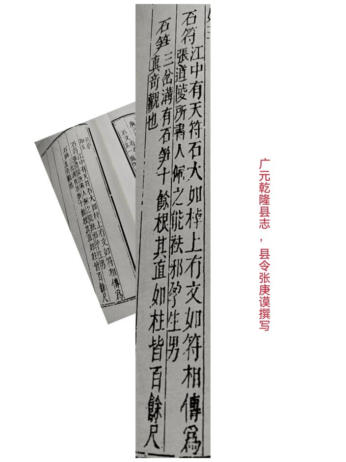 县志原文:“石符,江中有天符石,大如棹,上有文如符,相传为张道陵所書,人佩之能祛邪、孕生男。”
