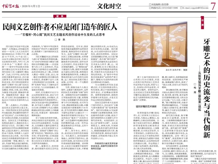 第二,凝聚合力、协同创新,能有效提升民间文艺作品的综合创新度。近年来,国家级奖项越来越重视作品的综合创新度,集体创作往往更具竞争力。此次“石榴籽·同心圆”民间工艺精品展征稿,也带着集体创作的内在诉求,有着主题体现多民族团结、创作由多人共同进行、作品呈现多个技艺领域的属性。以“彝海结盟”主题创作为例,剪纸可表现歃血为盟仪式的庄重,刺绣能呈现彝族服饰的华美,木雕适合塑造刘伯承与小叶丹的生动形象,这三类民间技艺既可独立成篇,又可统一在一个完整的叙事框架中。