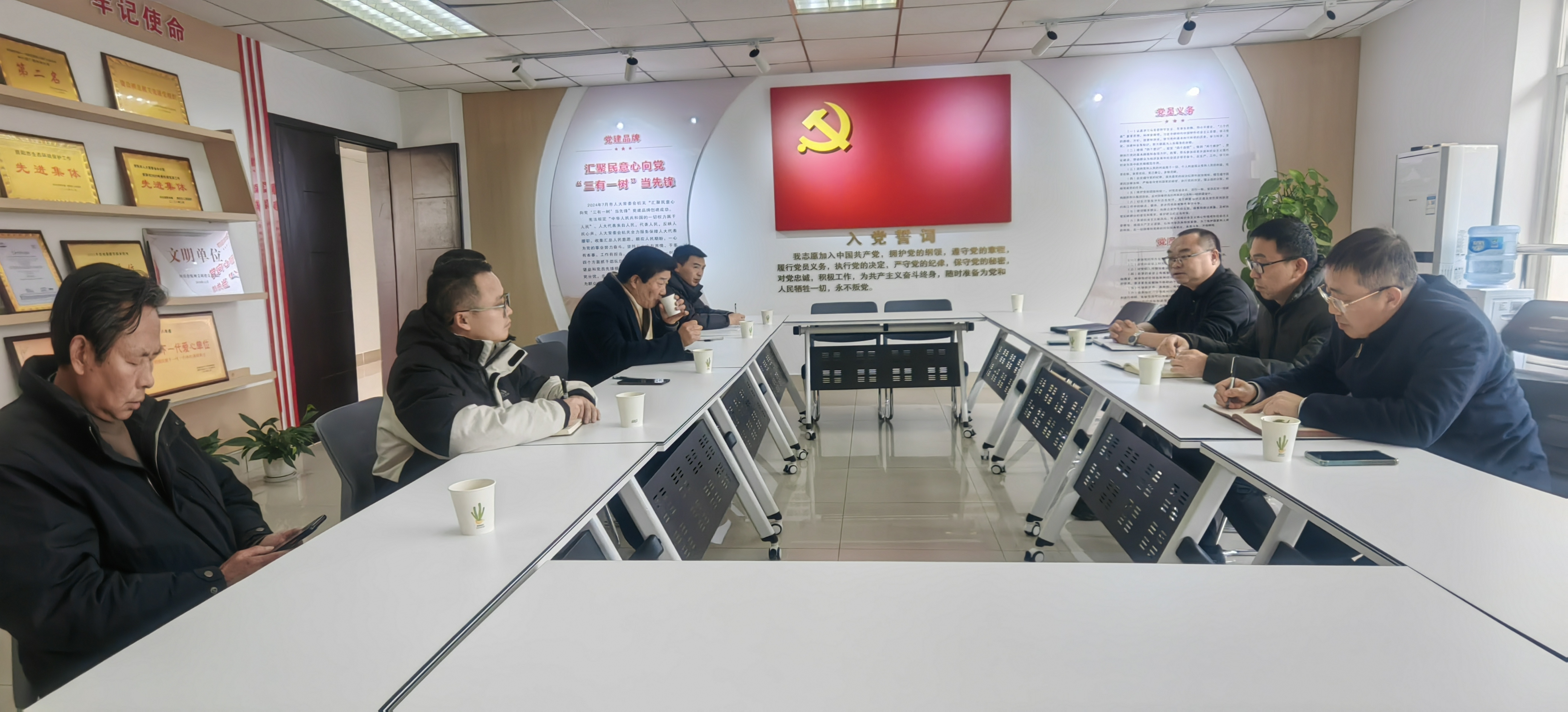 会议讨论了党支部分工情况,党支部书记吴杰主持党支部全面工作,党支部副书记舒朝水协助分管全面工作,汪古翔同志为组织委员,付玉娥同志为纪律委员,刘平同志为宣传委员。