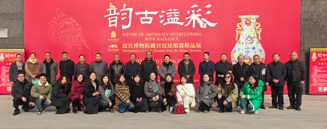 活动分两个阶段开展。第一阶段,全体参会人员前往市博物馆一楼临展厅,集中参观“韵古溢彩—故宫博物院藏宫廷珐琅器精品展”。据悉,该展览是故宫博物院宫廷珐琅器在西南地区的首次集中亮相,展出元明清三代百余件精美珐琅器,涵盖掐丝珐琅、画珐琅两大工艺,系统呈现了珐琅器的艺术传承与历史流变。在近一小时的参观中,大家近距离感受宫廷珐琅器的古韵风华与工艺魅力,领略中华优秀传统文化精髓,为后续立足本土开展文艺评论、挖掘文化价值积累了宝贵的审美经验和文化素材。